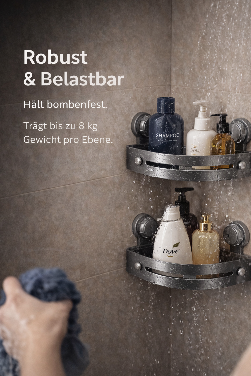 Perfekt für Shampoo, Duschgel, Rasierer & Pflegeprodukte.